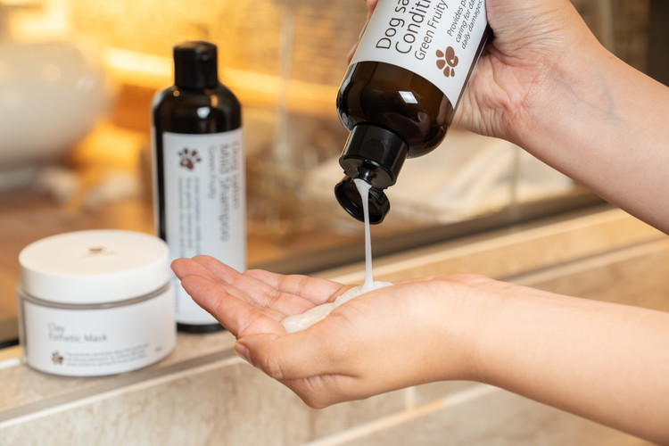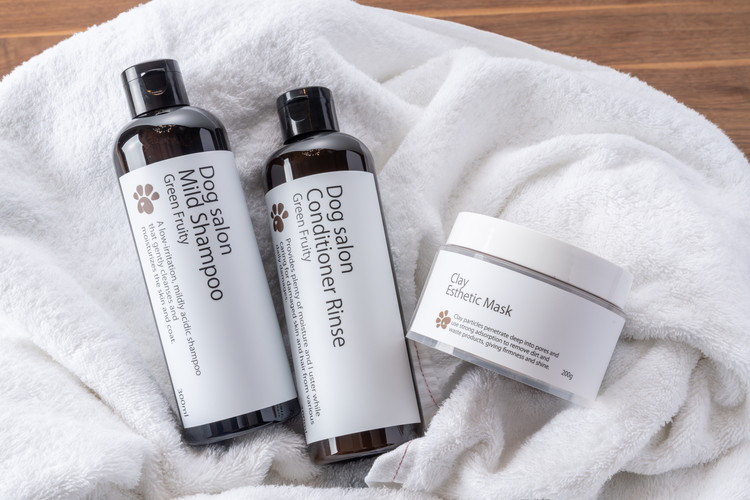 愛犬のためのシャンプー、コンディショナー、クレイパックの3点セットです