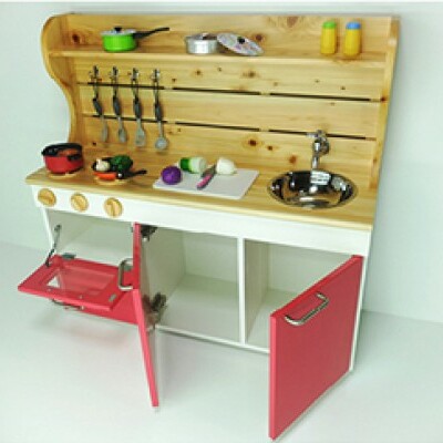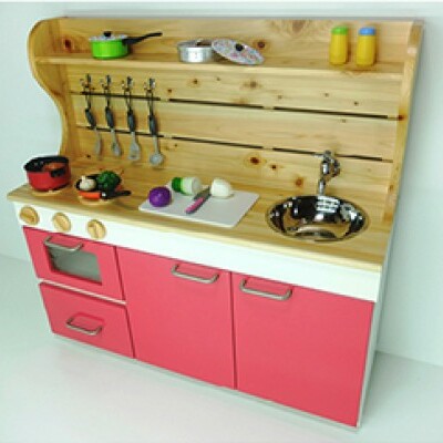 木工職人が製作した木の温もりがある可愛いままごとキッチンが出来上がりました。