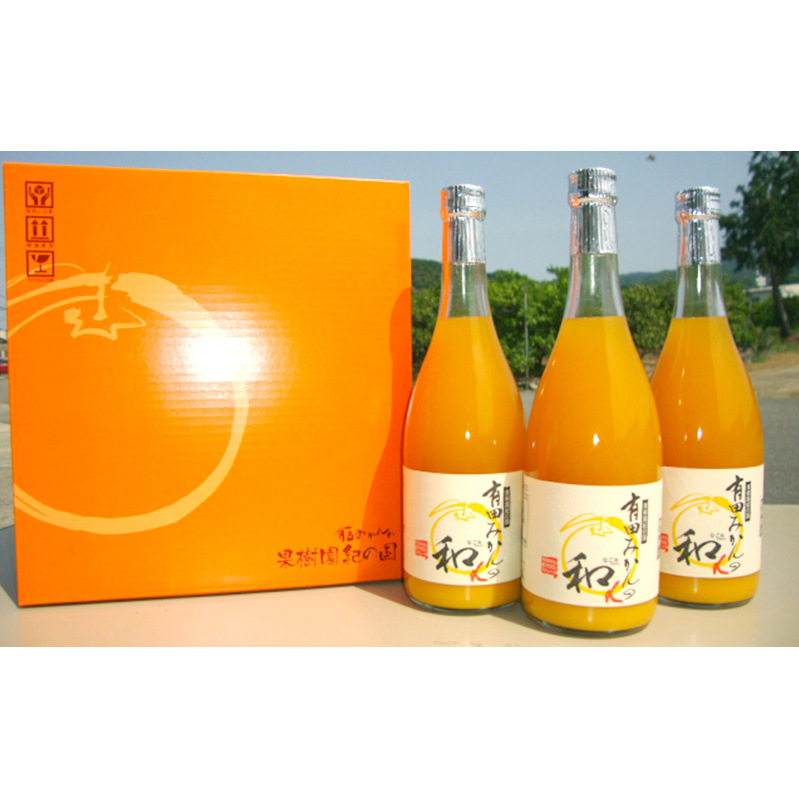 ZY6002n_果樹園紀の国 有田みかん ブランド ジュース 和α(なごみアルファ) 720ml×3本 セット【和歌山 みかんジュース ミカンジュース ストレート 無添加 果汁100% 有田】