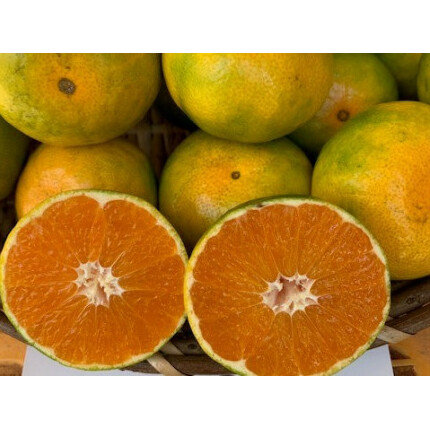 ゆら早生みかんは極早生みかんの一種で比較的に新しい品種で、形は普通のみかんより丸くて味は濃いです。有田でも毎年作付け面積が増えている人気品種です。