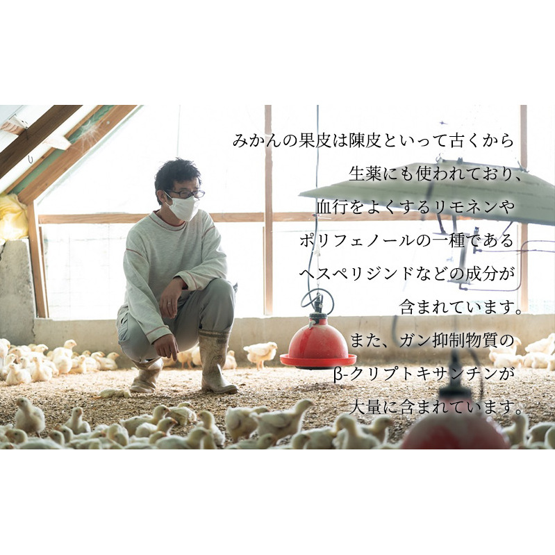 和歌山のブランド鶏「紀の国みかんどり」和歌山で採れたみかんの果皮を乾燥させて飼料にし、その飼料で自然豊かな山麓ですくすくと育った元気鶏です。