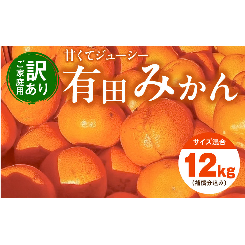EH6100_【訳あり ご家庭用】和歌山県産 有田みかん 10kg+2kg保証分 サイズ混合