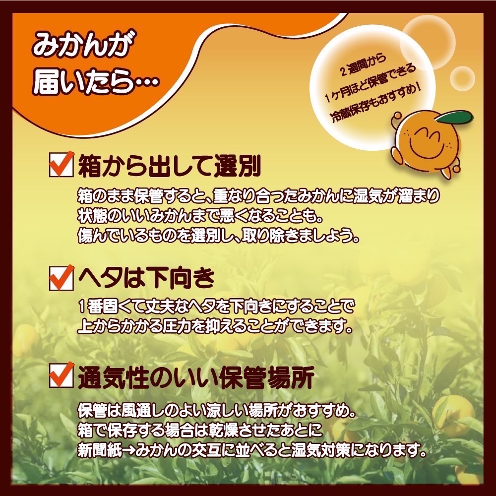 甘くて美味しいみかんをお届けするため、栽培方法にこだわり、まごころを込めて育てた自慢のみかんです。ぜひ一度ご賞味ください!