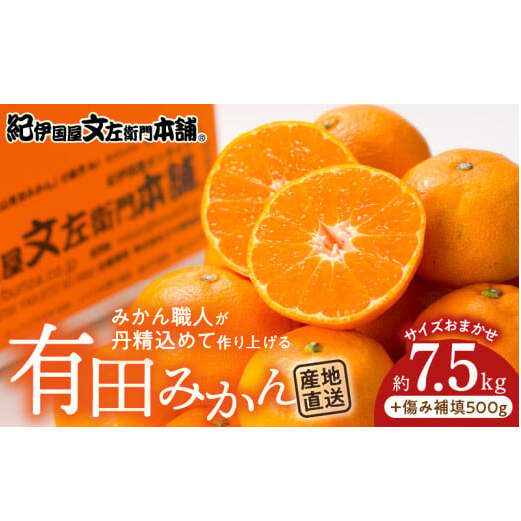 V7441_有田みかん約7.5kg(+傷み補填分500g)=合計8kg【サイズおまかせ】 / 産地直送 / 紀伊国屋文左衛門本舗(お届け日指定不可)