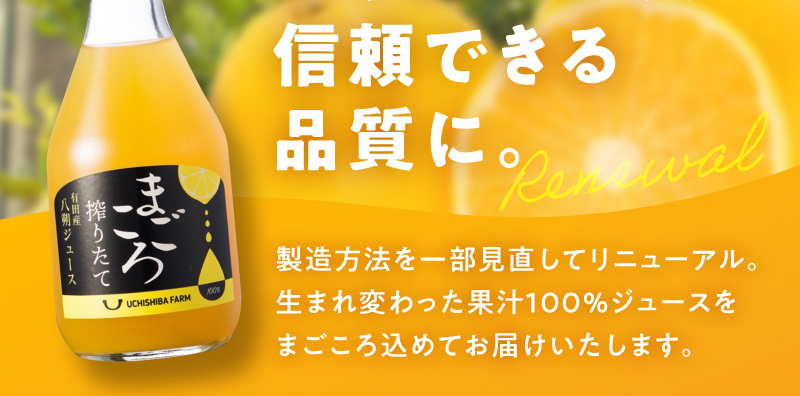 1本あたり八朔約6個~12個分を絞った贅沢な「八朔ジュース」です。