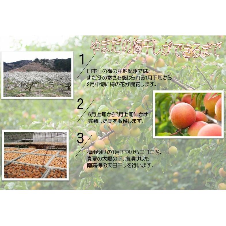 紀州南高梅本来の美味しい酸味を生かしながら、まろやかであっさりとした味わいに仕上げました。「甘すぎず、塩分控えめ」タイプをお求めの方におすすめ致します。甘さ控えめで、しらす丼のトッピングやパスタに絡めて味のアクセントにするなど、お料理にもよく合う梅干です。