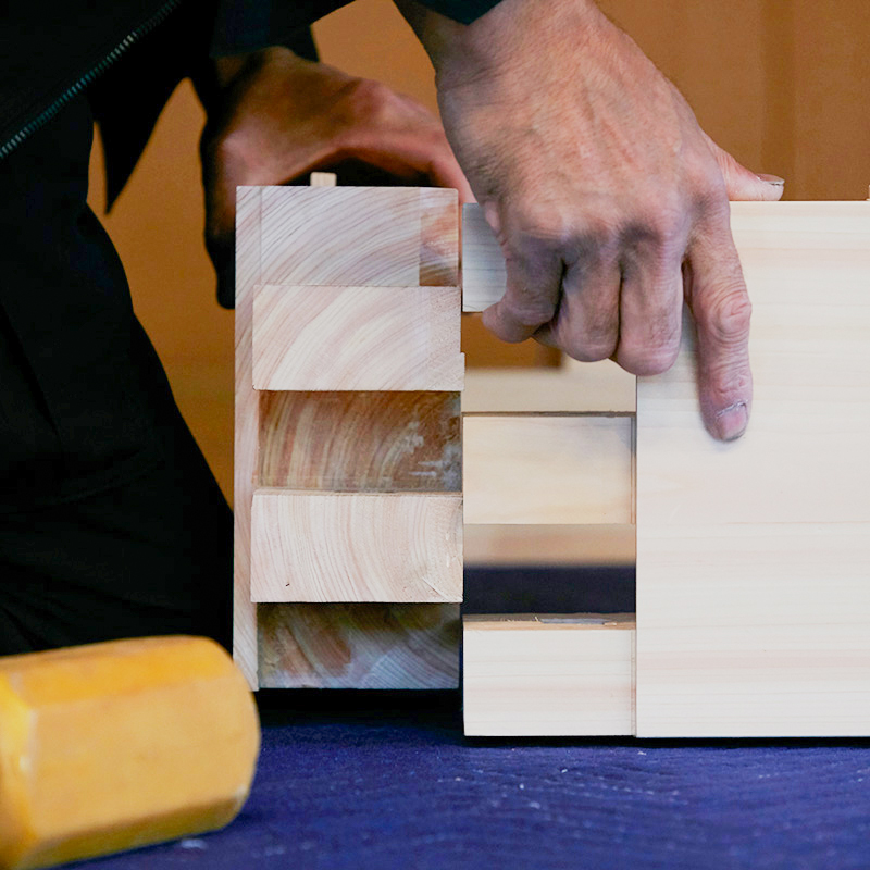 霊峰富士指定檜で作り、釘を1本も使わず、木の組み合わせ、1つ1つ手作りで細部までこだわり作り上げます。