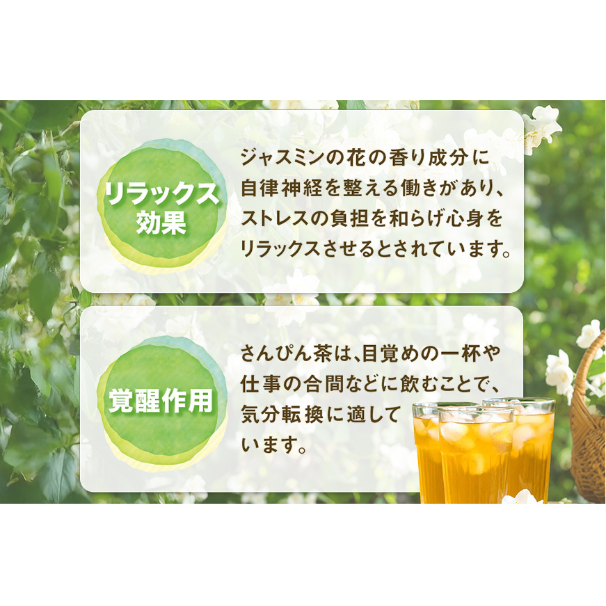 中国福建省寧徳産茶葉を2種類ブレンドし、さんぴん茶本来のまろやかな風味をお楽しみ頂ける様、純水を使用し60℃で低温抽出しています。