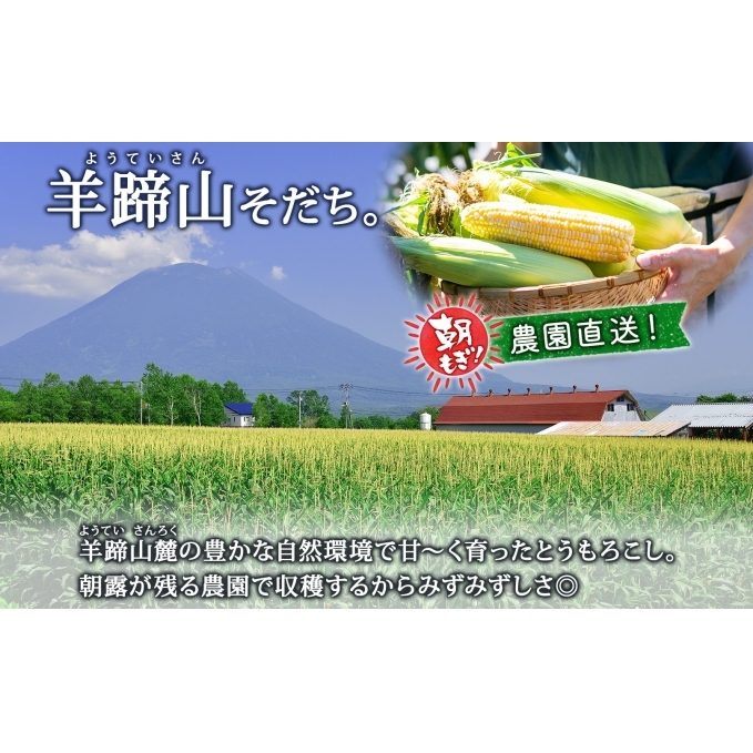 朝採り!自社の農園「ニセコファーム」で丁寧に育んだ、倶知安町産とうもろこし「味来」 計12本(L~2Lサイズ混合)です。
