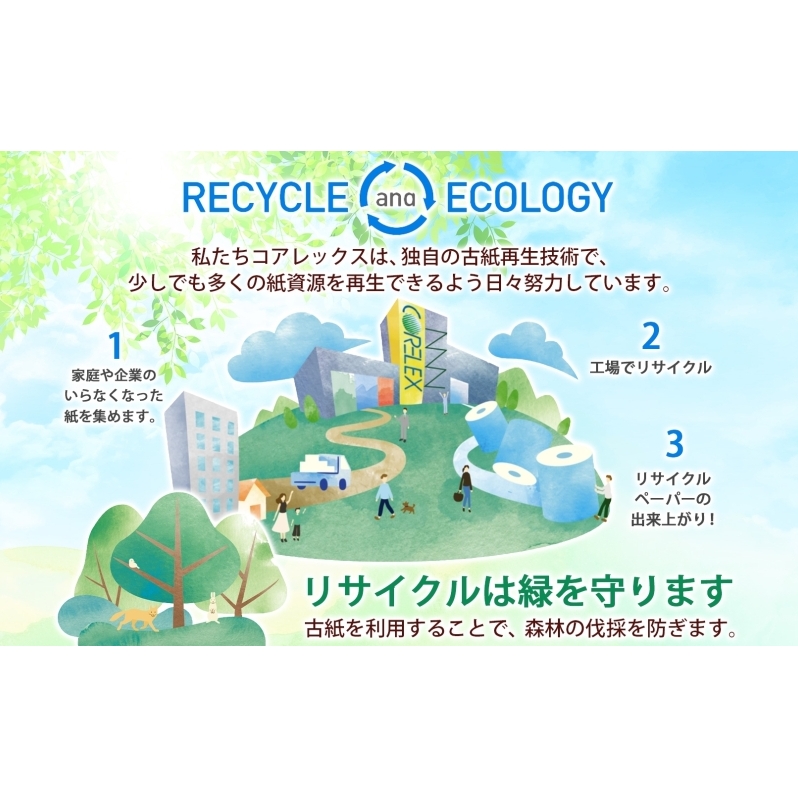 北海道産のリサイクルペーパー100%を使用したトイレットペーパーや、ティッシュペーパーを製造しているコアレックス。