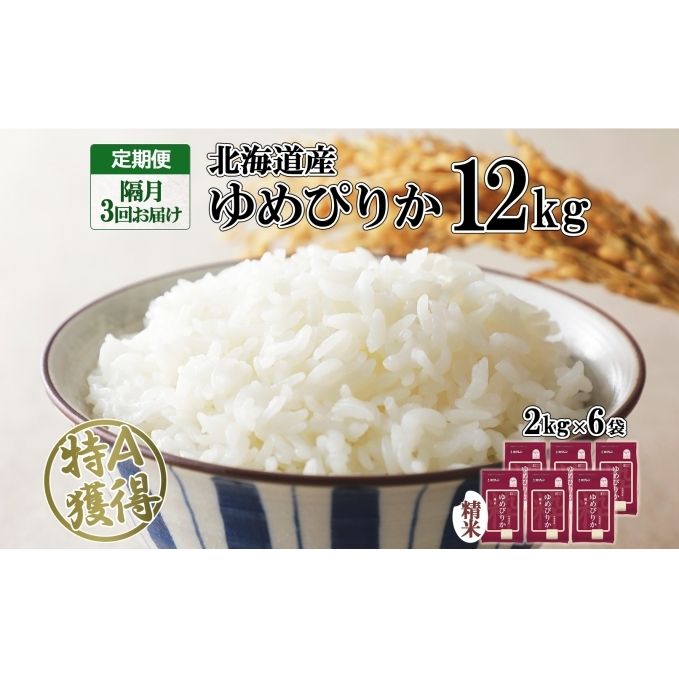 定期便 隔月3回 北海道産 ゆめぴりか 精米 12kg 米 特A 獲得 白米 ごはん 道産 12キロ 2kg ×6袋 小分け お米 ご飯 米 北海道米 ようてい農業協同組合 ホクレン 送料無料 北海道 倶知安町