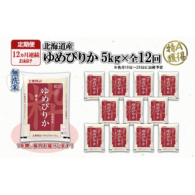 定期便 12ヶ月連続12回 北海道産 ゆめぴりか 無洗米 5kg 米 新米 特A 白米 お取り寄せ ごはん 道産米 ブランド米 1年間 ご飯 まとめ買い お米 ホクレン 北海道 倶知安町 【定期便・お米・ゆめぴりか・精米】