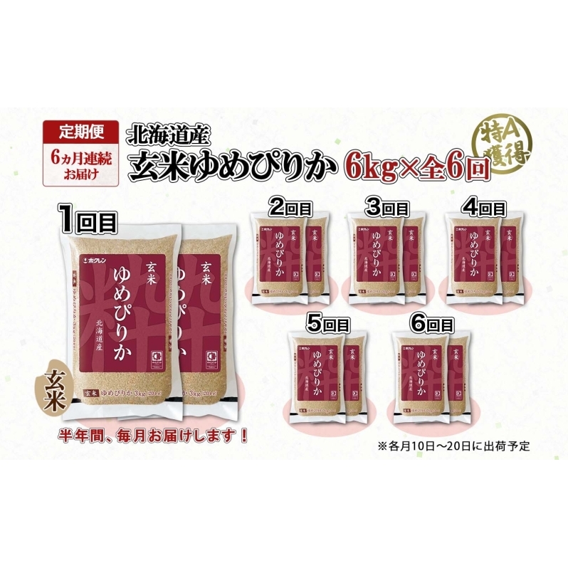 定期便 6ヵ月連続6回 北海道産 ゆめぴりか 玄米 3kg×2袋 計6kg 小分け 米 特A 国産 ごはん グルメ 食物繊維 ヘルシー お取り寄せ 備蓄 長期保存 プレゼント 贈答 ギフト ようてい農業協同組合 ホクレン 送料無料 北海道 倶知安町 6ヶ月