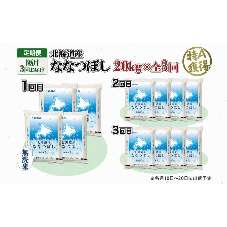 定期便 隔月3回 北海道産 ななつぼし 無洗米 20kg 米 特A 白米 お取り寄せ ごはん 道産米 ブランド米 20キロ おまとめ買い お米 ふっくら ようてい農業協同組合 ホクレン 送料無料 北海道 倶知安町