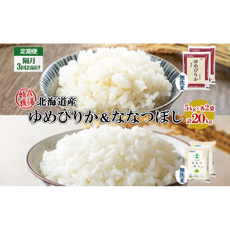 定期便 隔月3回 北海道産 ゆめぴりか ななつぼし 食べ比べ セット 無洗米 5kg 各2袋 計20kg 米 特A 白米 お取り寄せ ごはん ブランド米 ようてい農業協同組合 ホクレン 送料無料 北海道 倶知安町 お米 加工食品 惣菜