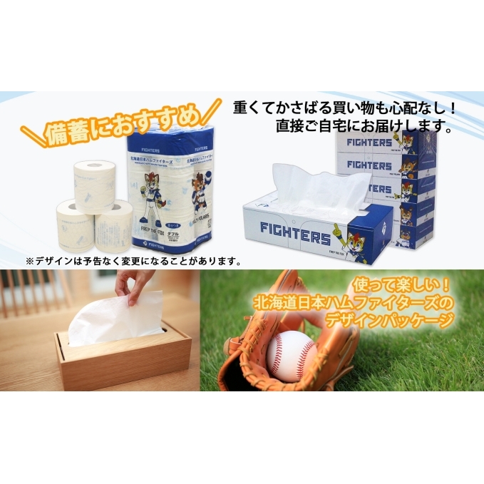 定期便 2ヵ月毎 全3回 北海道 日本ハムファイターズ トイレットペーパー ダブル 30m巻き 96ロール ボックス ティッシュ セット 日本製 香りつき まとめ買い リサイクル 防災 常備 消耗品 備蓄 日ハム ファイターズ 倶知安町 日用品