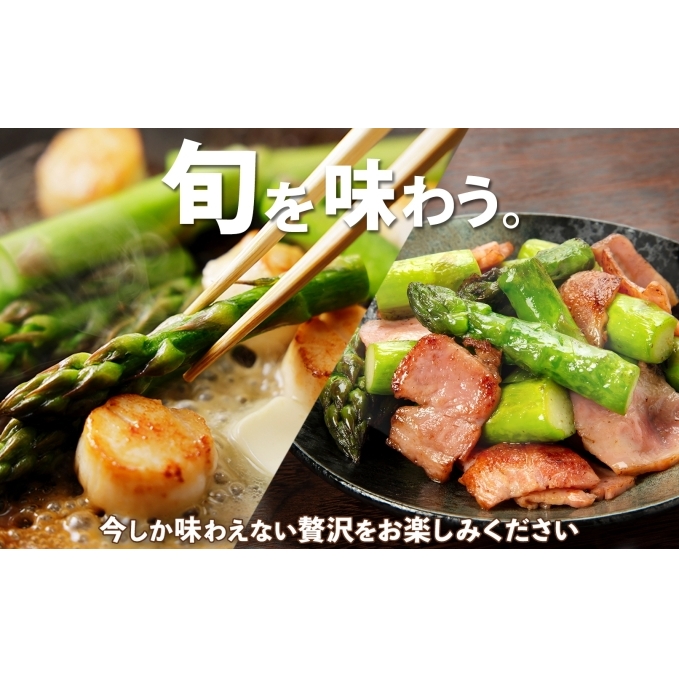 スジが少なく、柔らかくて鮮やかなアスパラガスです。長い冬の間に蓄えられた旨みと栄養、甘みが凝縮されており、瑞々しい旨味が感じられます。