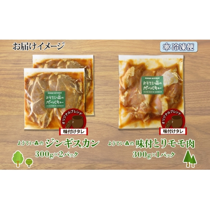 ようてい森のバーベキューセット ジンギスカン 300g ×2パック 味付鶏もも肉 300g 計900g 詰め合わせ 羊 グルメ 鶏 モモ BBQ ラム 小分け タレ付 お肉 羊肉