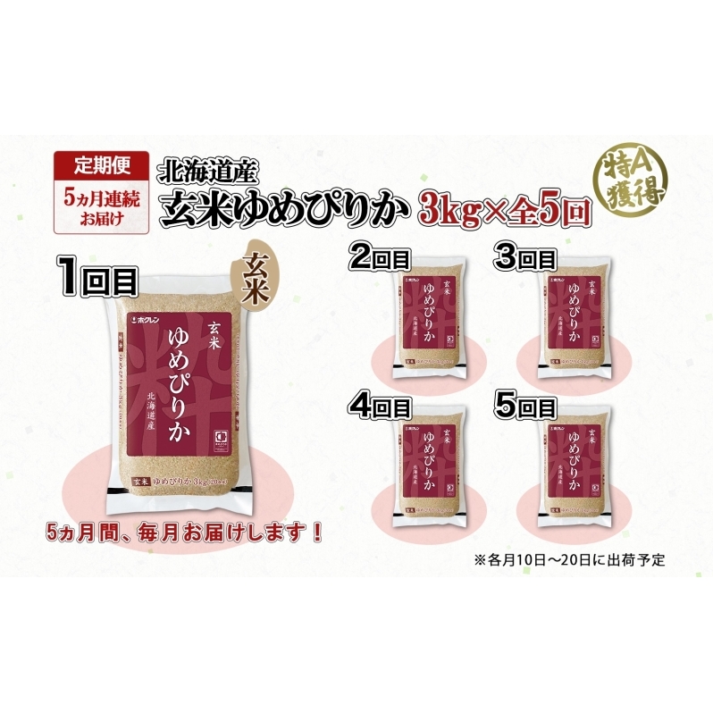 定期便 5ヵ月連続5回 北海道産 ゆめぴりか 玄米 3kg 米 特A 獲得 お取り寄せ ごはん 道産米 ブランド米 3キロ お米 ご飯 ヘルシー 北海道米 ようてい農業協同組合 ホクレン 送料無料 北海道 倶知安町