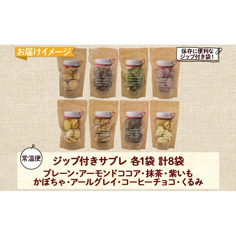 7. 北海道 サブレ 8種 各8枚入りジップ付き 手作り クッキー 焼き菓子 詰め合わせ かわいい おやつ スイーツ プレーン ココア アーモンド 紫いも アールグレイ コーヒー チョコ くるみ 抹茶 かぼちゃ プレゼント ギフト Sugar Palette 送料無料