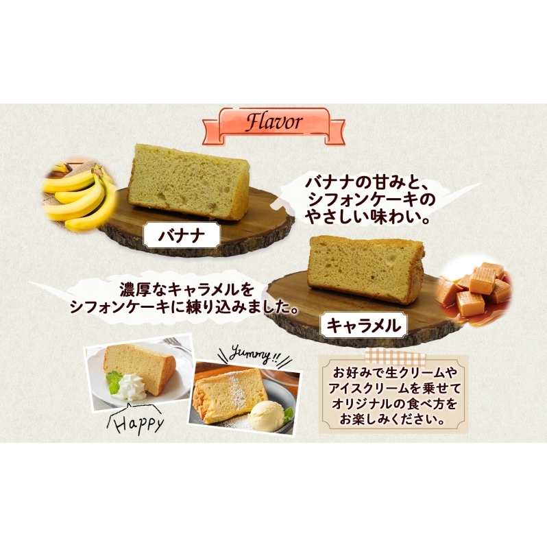 濃厚なキャラメルをシフォンケーキに練り込みました。