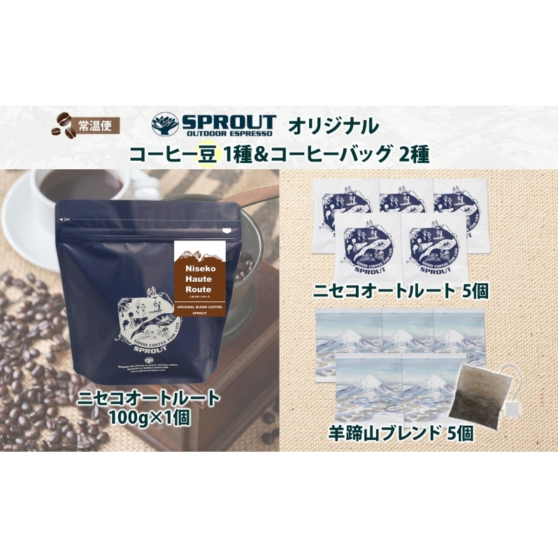 自家焙煎 オリジナル コーヒー 豆 1種 コーヒーバッグ 2種 セット 20杯 珈琲 オートルート 羊蹄山 ティーバッグ ドリップコーヒー 飲み比べ ブレンド 専門店 ギフト カフェ ニセコ SPROUT 北海道 俱知安町