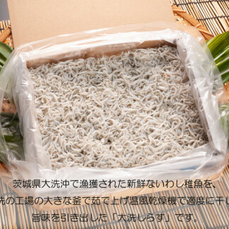 茨城県大洗沖で漁獲された新鮮ないわし稚魚を、大洗の工場の大きな釜で茹で上げ温風乾燥機で適度に干して旨味を引き出した「大洗しらす」です。