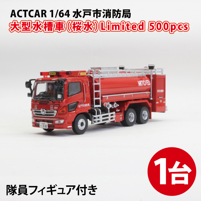 【数量限定】ACTCAR 1/64 水戸市消防局 大型水槽車(桜水)Limited 500pcs※隊員フィギュア付【限定生産 限定品 希少 オリジナル ミニカー ミニチュア 働く車 大型水槽車 水戸市 水戸 茨城県】(LM-2)