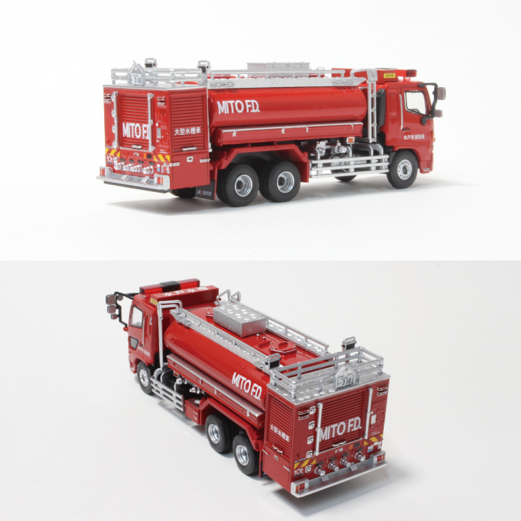 本製品はシリーズ第2弾で、弊社の地元水戸市の大型水槽車を1/64スケールで再現しました。