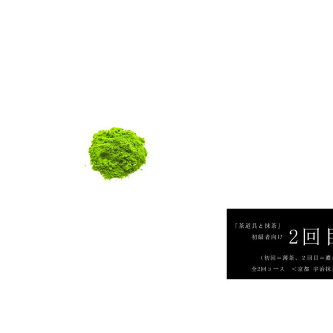ご用意いただくお菓子は、和菓子でも洋菓子でも、お好きなお菓子をチョイス。先にお菓子を食べ、後から抹茶を飲むことで(お菓子の)甘みが余韻として残り、上品な香りとビターなテイストが視覚・嗅覚・味覚を通して合わさる、それが古来より日本人が大切にしてきた「わび・さび」。リアル宇治抹茶のコクをお濃茶でゆっくりとご堪能下さい。