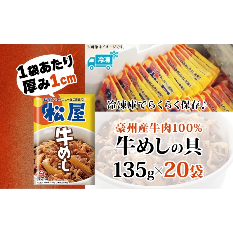牛丼 松屋 牛めしの具 20個 135g×20個冷凍 セット お肉 牛 冷凍 時短 簡単 便利 保存 ストック 総菜 夕食 夜食 レンチン おかず 玉ねぎ おつまみ ビールのお供 ご飯のお供 お取り寄せ グルメ 非常食 備蓄 夜食 肉好き 牛丼 埼玉県 嵐山町