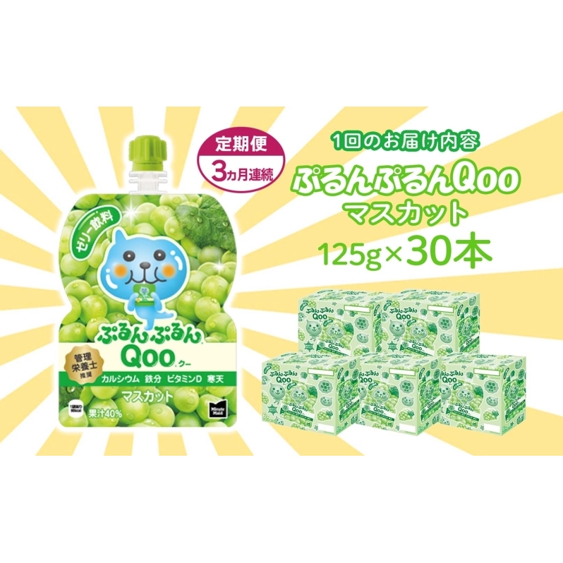 定期便 3ヵ月 ゼリー ミニッツメイド ぷるんぷるん Qoo マスカット 125g 30本入 コカ・コーラ クー パウチ飲料 ゼリー飲料 おやつ 子ども ヘルシー ダイエット 低カロリー 備蓄 防災 非常食 埼玉県 嵐山町 ドリンク カルシウム ビタミンD 鉄分