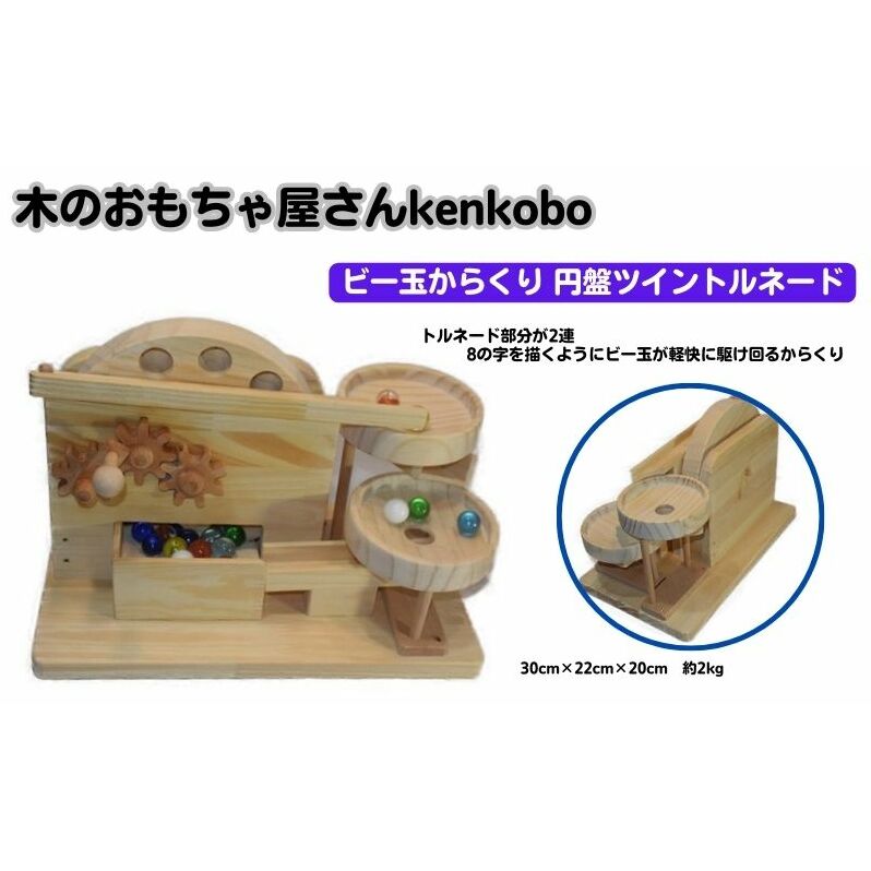 手作り木のおもちゃ ビー玉からくり円盤ツイントルネード
