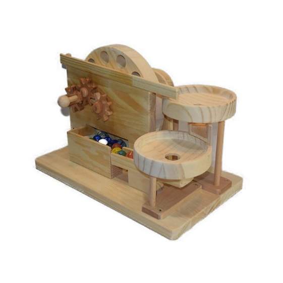 3つの歯車で回す感覚は何とも格別で、ビー玉と木が触れ合うことで奏でる音は心に響き、お子さんも大人も虜になることでしょう。