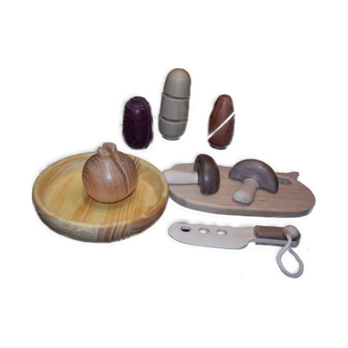 それそれの野菜は天然木材の持つ色、質感等特徴を生かして削りたし手触り感の良さにこだわりしっかり磨き上げました。包丁、まな板、野菜入れも使いやすさとデザインにもこだわり、野菜の接合部分はマジックテープを使用することでザックといい音がします。ウォールナットの色あせ防止に蜜蝋を塗っています。