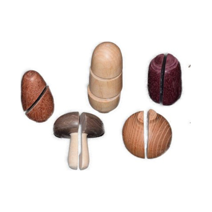 大根:4cm×8cm ヒノキ(トチ)キノコ:5cm×5cm ウォールナット