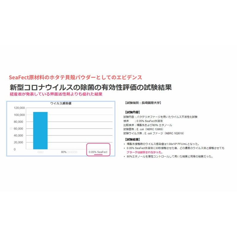 ※抗菌試験は長崎国際大学、新型コロナウイルス不活性化試験は宮崎大学にて対応済みです。