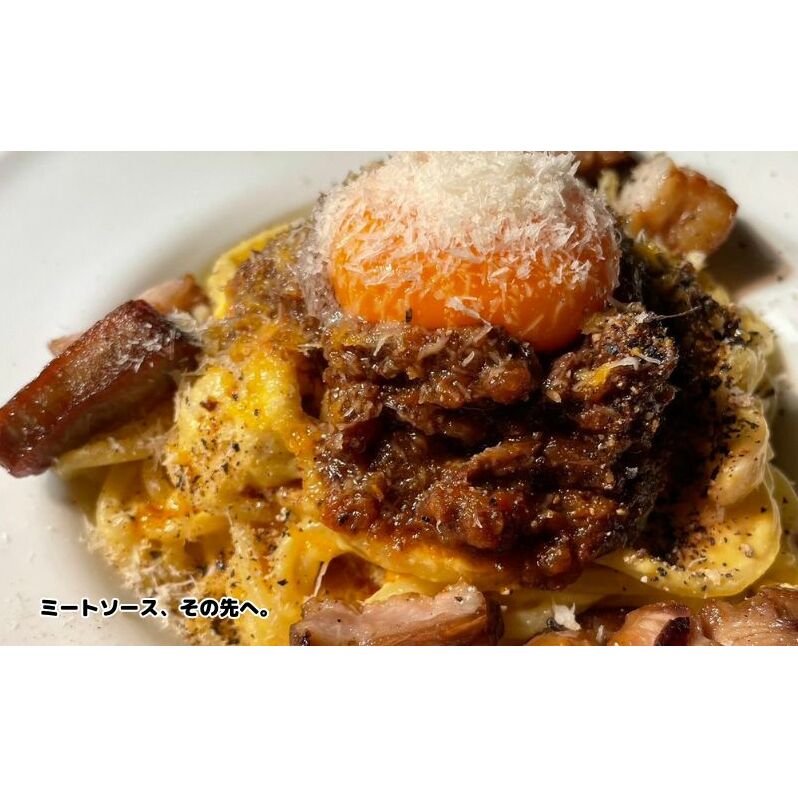 ひき肉で作らないミートソースです。「塊の和牛スネ肉」を炭火で焼いてからホロホロになるまで煮込みます。