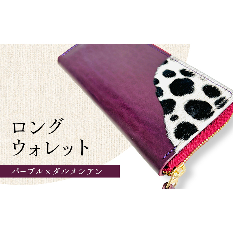 財布 大容量 ロングウォレット パープルxダルメシアン 長財布 革 レザー 牛革 小銭入れ 札入れ 一点モノ ダルメシアン ギフト 日用品 雑貨 日進市 愛知県