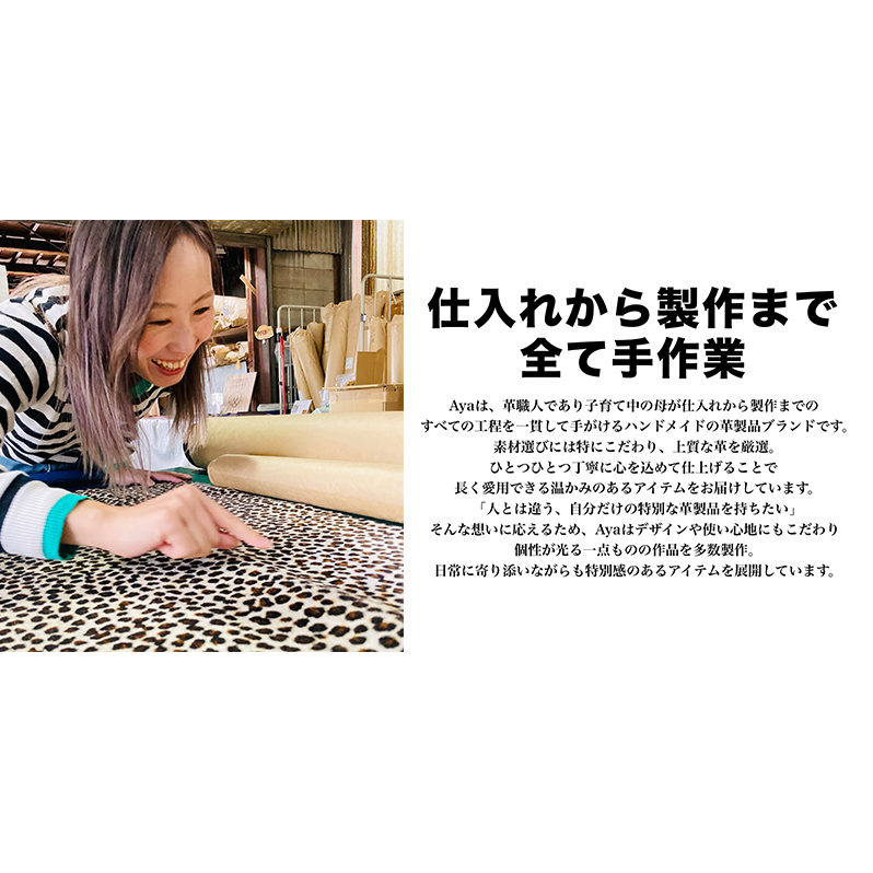 それぞれが異なる表情を紡ぎ、あなただけの物語をつくる特別なウォレットです。サイズは約10cm×7.5cm×3.5cm。手のひらにすっぽり収まり、カード・小銭、お札は折らずにしっかり収納できる設計。小さくても、日常使いに必要な機能をきちんと備えています。仕入れから製作まで一貫して手掛けるAyaが,細部まで心を込めて製作。すべて手作業で丁寧に仕上げています。唯一無二の革を、不備のくらしの相棒に。ギフトにもお勧めです。