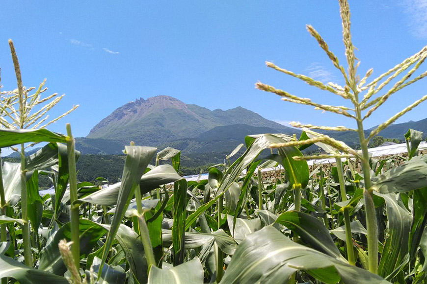 東側は有明海ですので朝から十分に日があたり、西側は普賢岳ですので強い西日から野菜を守ってくれていますのでとうもろこし栽培にとても適しております。