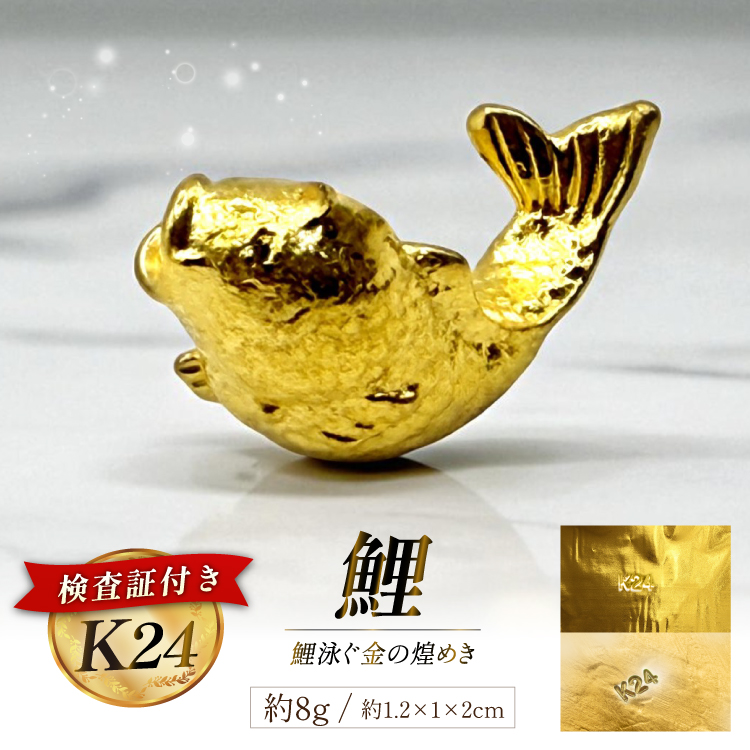 BJ251 K24 純金 鯉 8g 置物 鯉の泳ぐまち 島原記念オブジェ [ 金 24金 24K ゴールド gold 貴金属 インゴット 記念品 チャーム 投資 資産 長崎県 島原市 ]