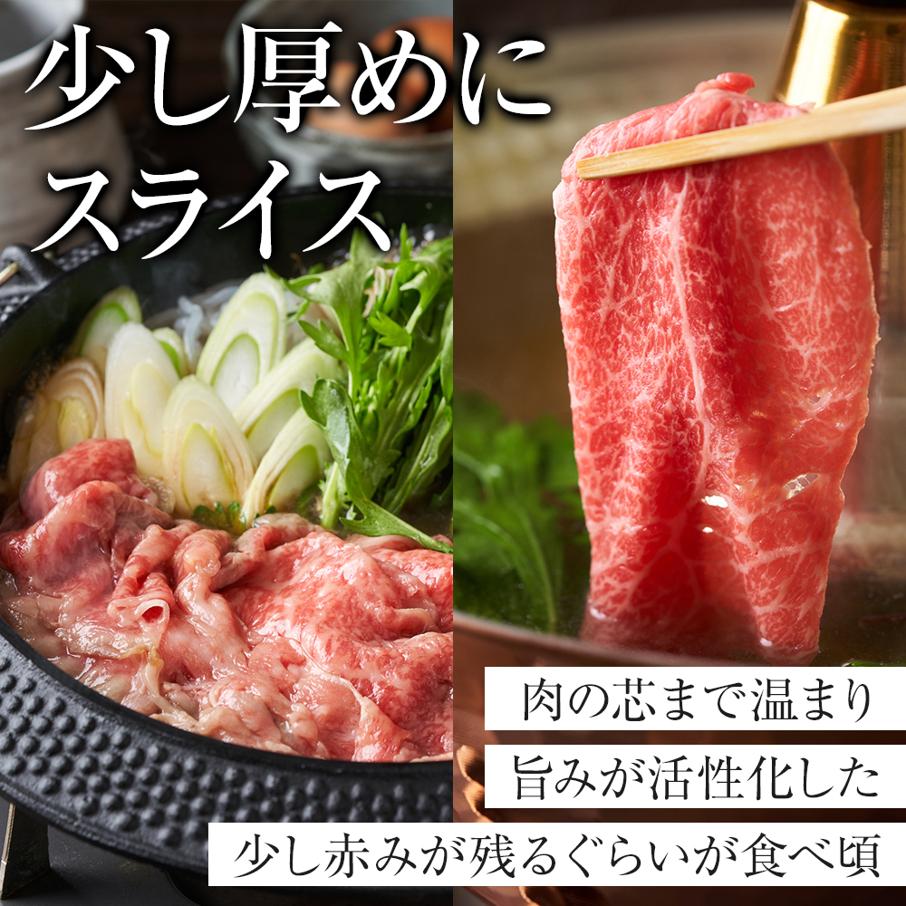 肉質に絶対の自信があるから、すき焼きもしゃぶしゃぶも同じ厚み。肉の芯まで温まり、旨みが活性化した、少し赤みが残るぐらいが食べ頃。
