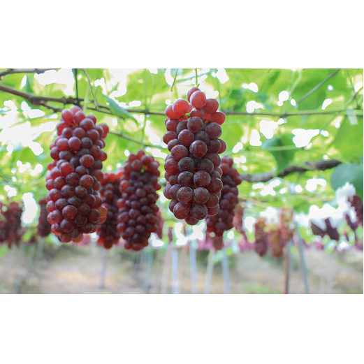 南向きの斜面で太陽の光をいっぱいに浴びた朝どりぶどうは糖度が高く適度な酸味もあり、夏バテ防止にぴったりのフルーツです。