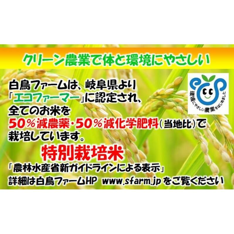コシヒカリより、アミロース成分が2%ほど低く、モッチリ甘く、冷めても美味しいのが特徴です。源流に石灰岩の山々を持ちミネラルたっぷりの揖斐川の水に育まれた、全国で10万トンほどしか栽培されていない、知る人ぞ知る良食味のお米です。(特別栽培米)(栽培期間中50%減農薬)