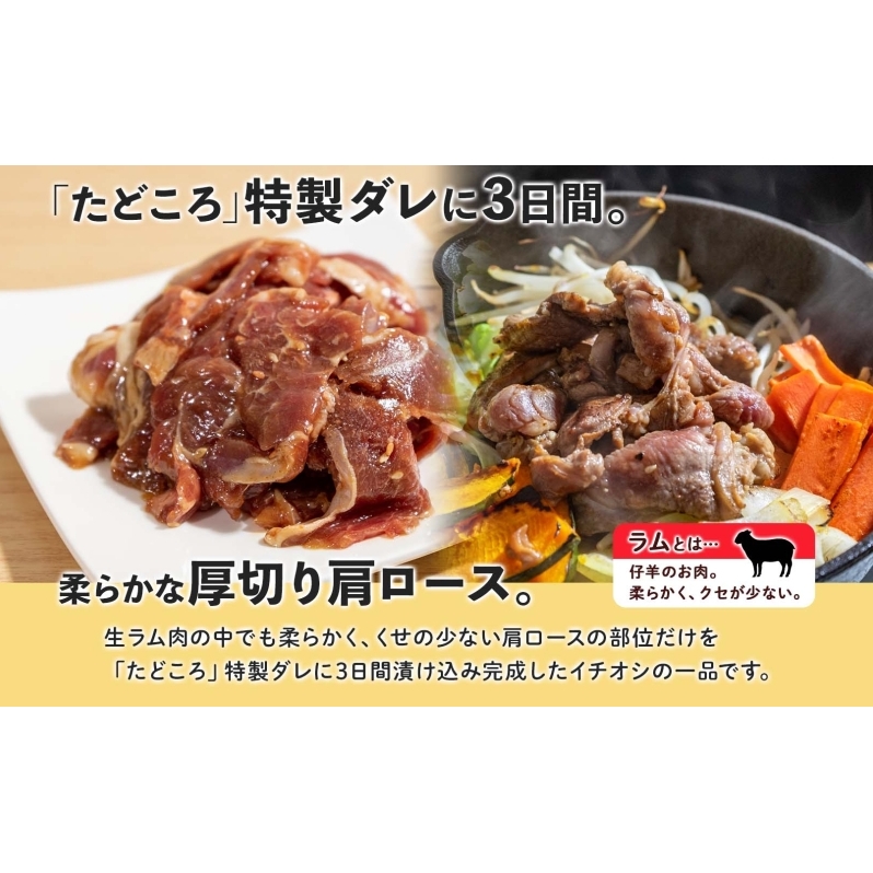 北海道 厚切り 肩ロース 生ラム ジンギスカン 250g×2袋 ラム タレ たれ 羊肉 贅沢 鍋 焼肉 ジューシー おかず 本格的 簡単 調理 グルメ お取り寄せ お肉屋 たどころ 送料無料