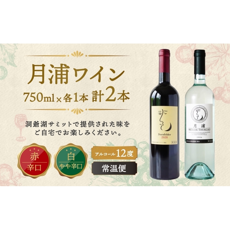 北海道 月浦ワイン 赤 白 ワイン 750ml×各1本 ドルンフェルダー ミュラートゥルガウ お酒 アルコール ブドウ酒 家飲み お祝い 贈答用 ギフト 月浦ワイナリー 送料無料 赤ワイン 白ワイン