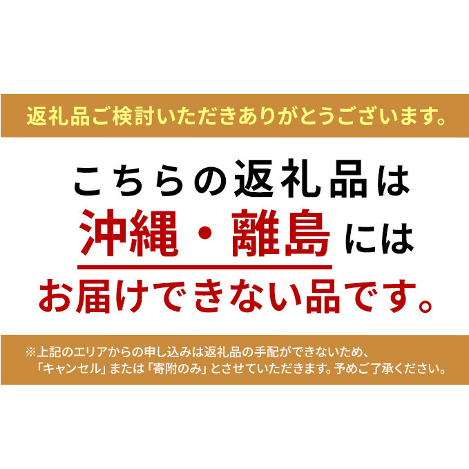 ※上記のエリアからの申し込みは返礼品の手配が出来ないため、「キャンセル」または「寄附のみ」とさせていただきます。予めご了承ください。