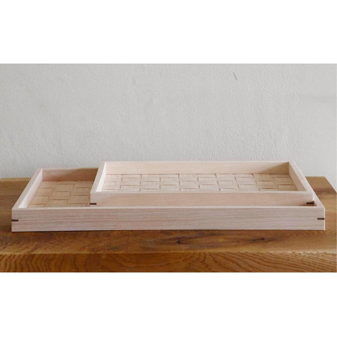 薄く削いだブナ材を1本1本丁寧に編込み、トレイにしました。
