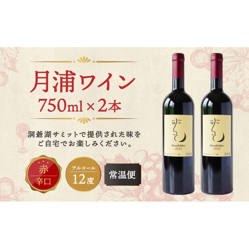 北海道 月浦ワイン 赤 750ml×2本 ドルンフェルダー 赤ワインお酒 アルコール ブドウ酒 自社農園 家飲み お祝い 記念日 贈答用 ギフト 月浦ワイナリー 送料無料 まろやか 深い味わい 大切な日